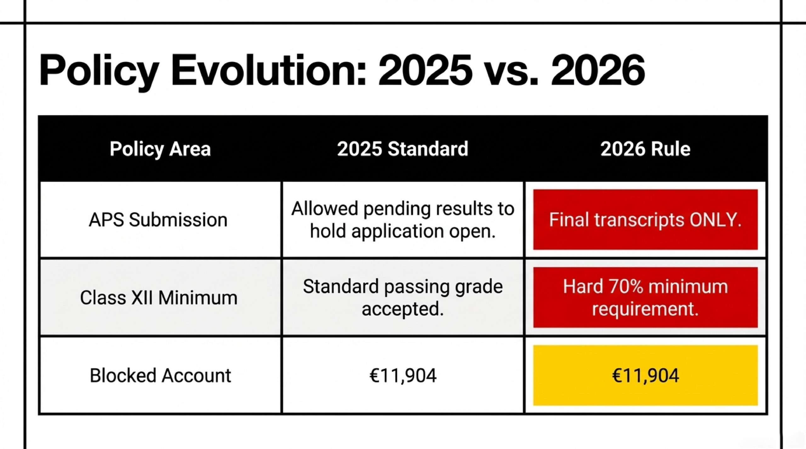 Germany has introduced major updates for 2026! Learn about new APS rules, 70% minimum requirement, and blocked account funds (€11,904). Stay prepared for Winter 2026/27 intake